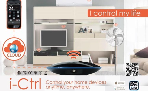 Since i-Ctrl is Wi-Fi-enabled, users will also be able to remotely control their appliances when they are away from home. This function may be convenient for people who want to pre-heat or pre-cool their homes before they arrive at their residence, or for those who forget to turn off lighting or other devices after leaving home. From the i-Ctrl app, users may also schedule when a home electronics should turn on or off at a specific time.