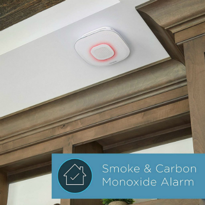 The ceiling-mounted smoke and carbon monoxide detector comes with a 10-watt speaker, giving it the capability of an Amazon Echo to control smart devices at home, as well as to play music and read the news. There is a battery backup in case the power goes out.