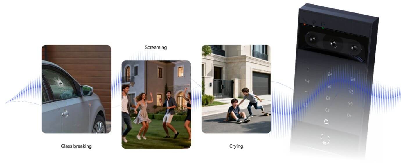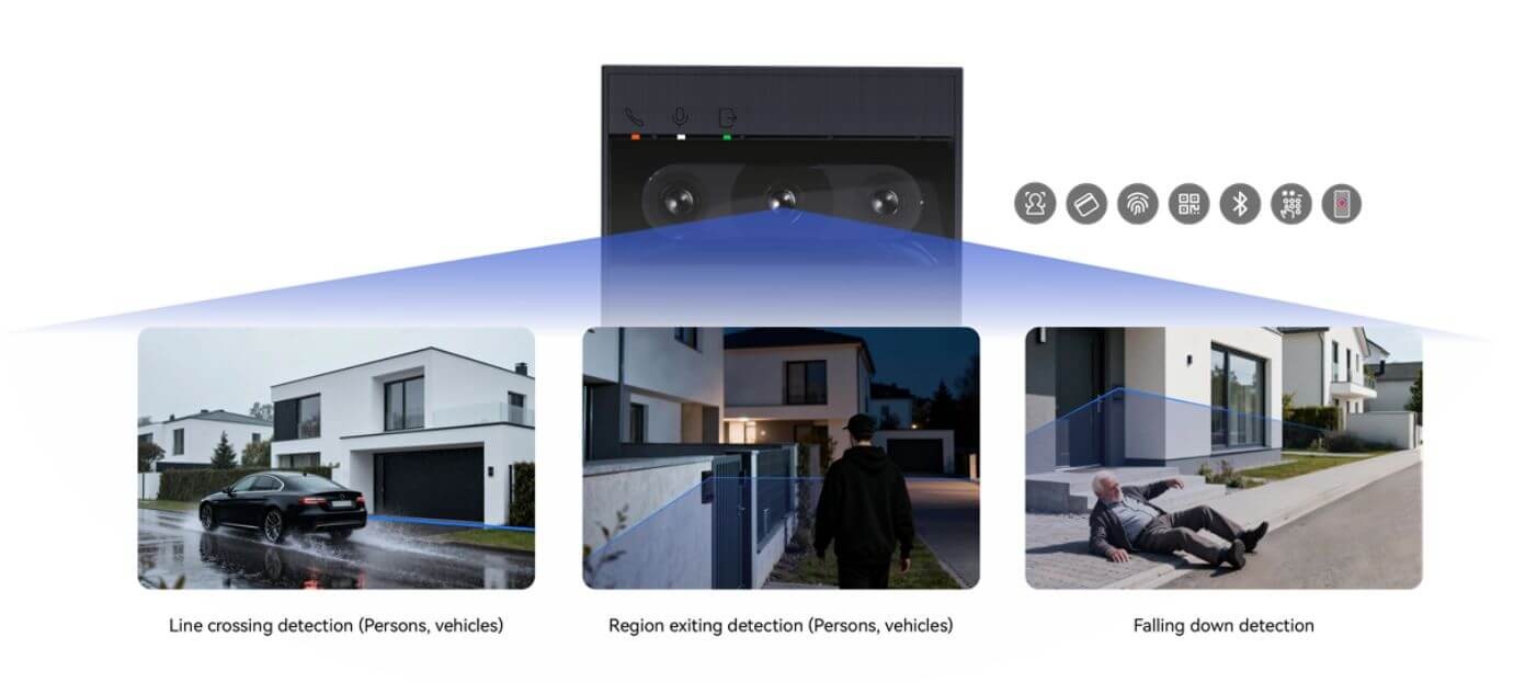 TalkVu evolves security from reactive to proactive protection. Multi-modal access control supports facial recognition, access cards, PIN codes, Bluetooth, QR codes, and mobile app authorization. Intelligent video analytics provide smart event detection including fall detection, line crossing, and region intrusion with instant alerts, while abnormal sound detection identifies screaming, glass breaking, and unusual sounds with immediate notifications. These layered features transform your intercom into an intelligent and proactive protection system.