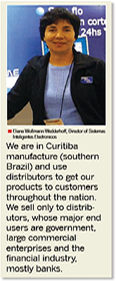 "We are in Curitiba manufacture (southern Brazil) and use distributors to get our product to customers throughout the nation," shared Eliane Wollmann Wedderhoff, Director, Sistemas Inteligentes Electronicos Ltda. "We sell only to distributors, whose major end users are government, large commercial enterprises and the financial industry, mostly banks."