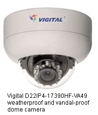With feature board, 4 - 9 millimeters and 9 - 22 millimeters vari-focal auto iris lens, Vigital's D22IP4-17390HF-VA49 3-Axis weatherproof and vandalproof