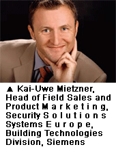 Siemens uses connectors, a type of software interface that allows system integrators to combine the existing external system with their security platform. "This is called SOAP, a protocol for exchanging XML-based messages over computer networks, normally using HTTP/HTTPS," explained Seidl. "Itˇs a control interface to connect all subsystems, sensors and external databases together. Itˇs an open interface. The implementation of the IT part is done by the integrator setting up the database and hardware networking."