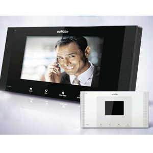 ezVille video phones EVW-0710G and EVW-0310G are the two-wire system with 7-inch and 3.5-inch LCD displays respectively. The doorphones support touch key buttons of input interface. Besides intercommunication, the products security features, such as image capture and video recording of visitors. Besides Video calling to the guard office are provided. Moreover, user can release the digital door lock. About the connection, the system can connect to two cameras. Besides, they feature AC/DC switch and sub phone links.